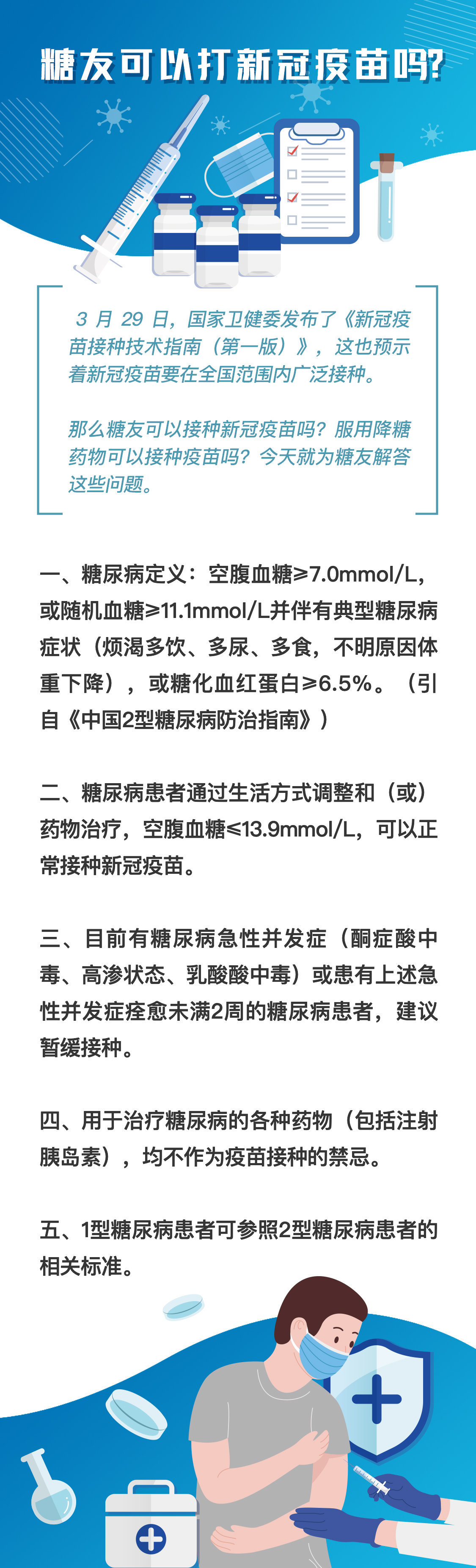 那么糖友可以接種新冠疫苗嗎?服用降糖藥物可以接種疫苗嗎?今天就為糖友解答這些問題。內容來源:北京市疾病預防控制中心