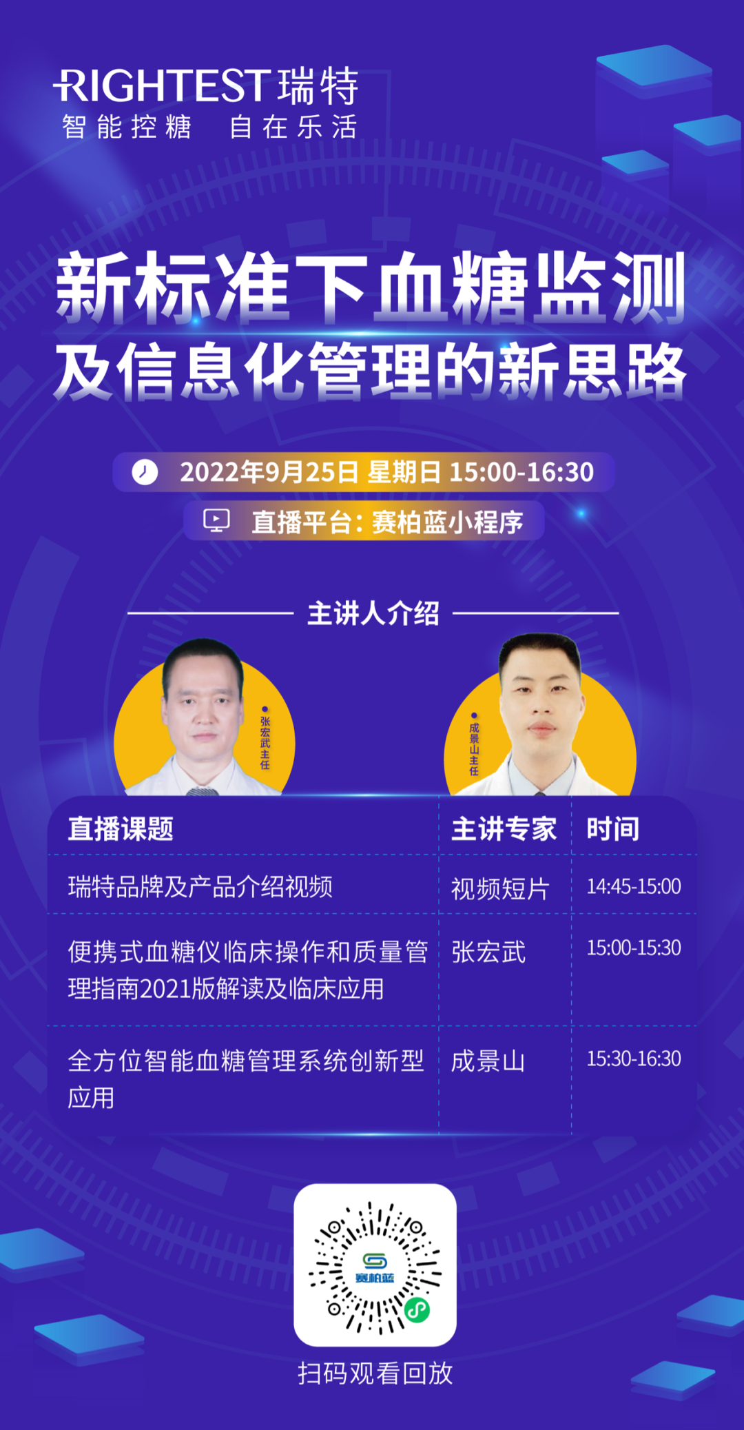 在近日,我們在線召開了一場主題為“新標準下血糖監(jiān)測及信息化管理的新思路”的學術直播會議,特邀深圳市中西醫(yī)結合內分泌科張宏武主任,圍繞新舊版本POCT臨床操作和管理指南的差異和內容重點,就如何實現(xiàn)規(guī)范化、標準化的POCT管理,幫助醫(yī)務工作者提升相關實踐技能分享了自身的心得體會,為提升國內院內POCT質量管理和信息化水平提供了有益借鑒。