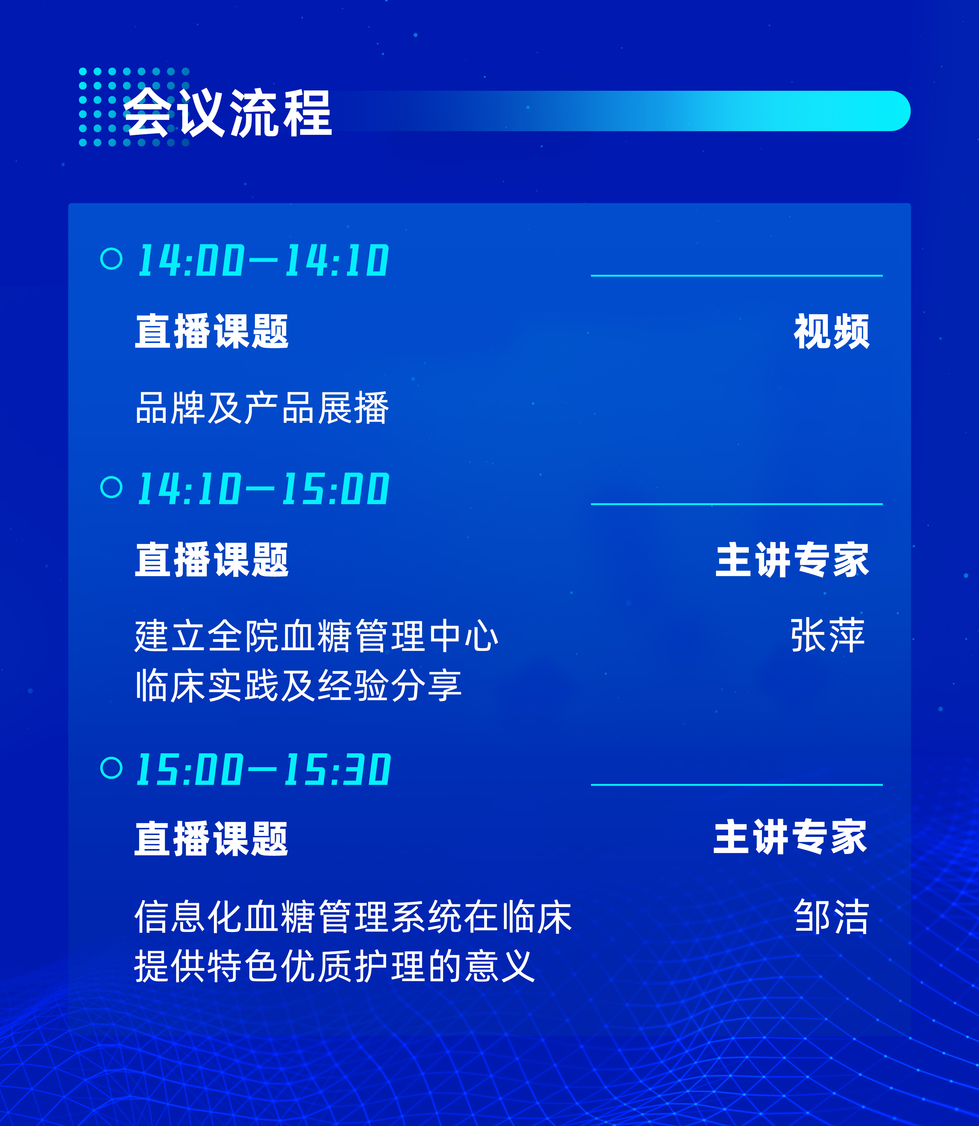 在本次會議中,專家們將緊緊圍繞全院血糖信息化管理這一核心課題,從多維度分享行業經驗與前瞻思考,分別就全院血糖管理中心臨床實踐,以及在臨床中如何提供特色優質護理作出深度解讀。