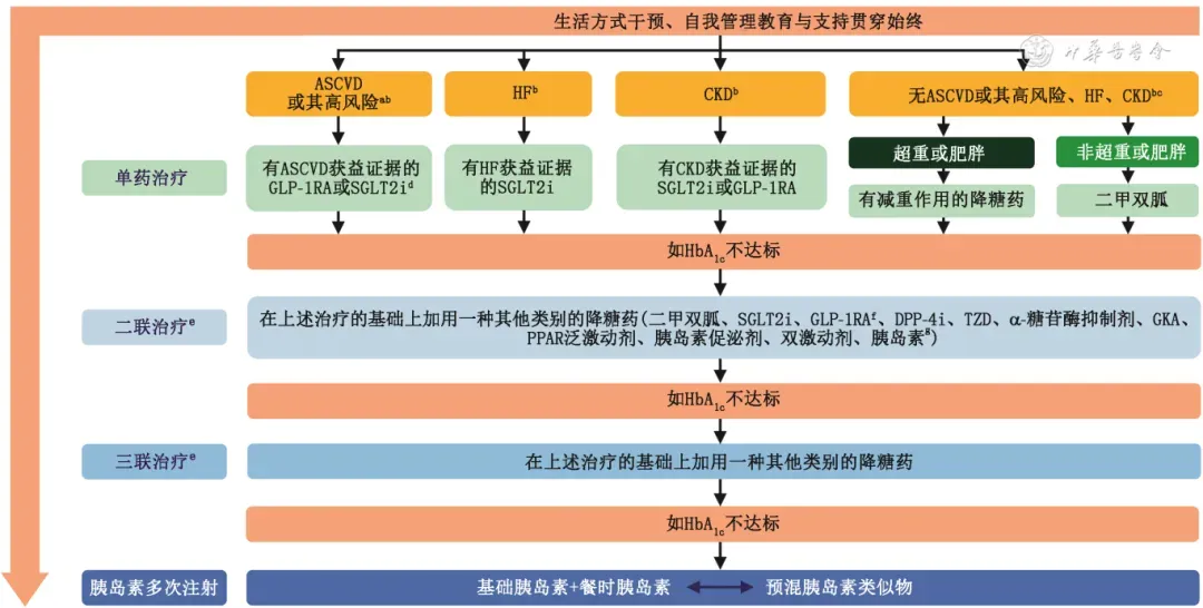 4、生活方式干預、糖尿病自我管理教育與支持(DSMES)是T2DM的基礎治療措施,應貫穿于治療的始終;