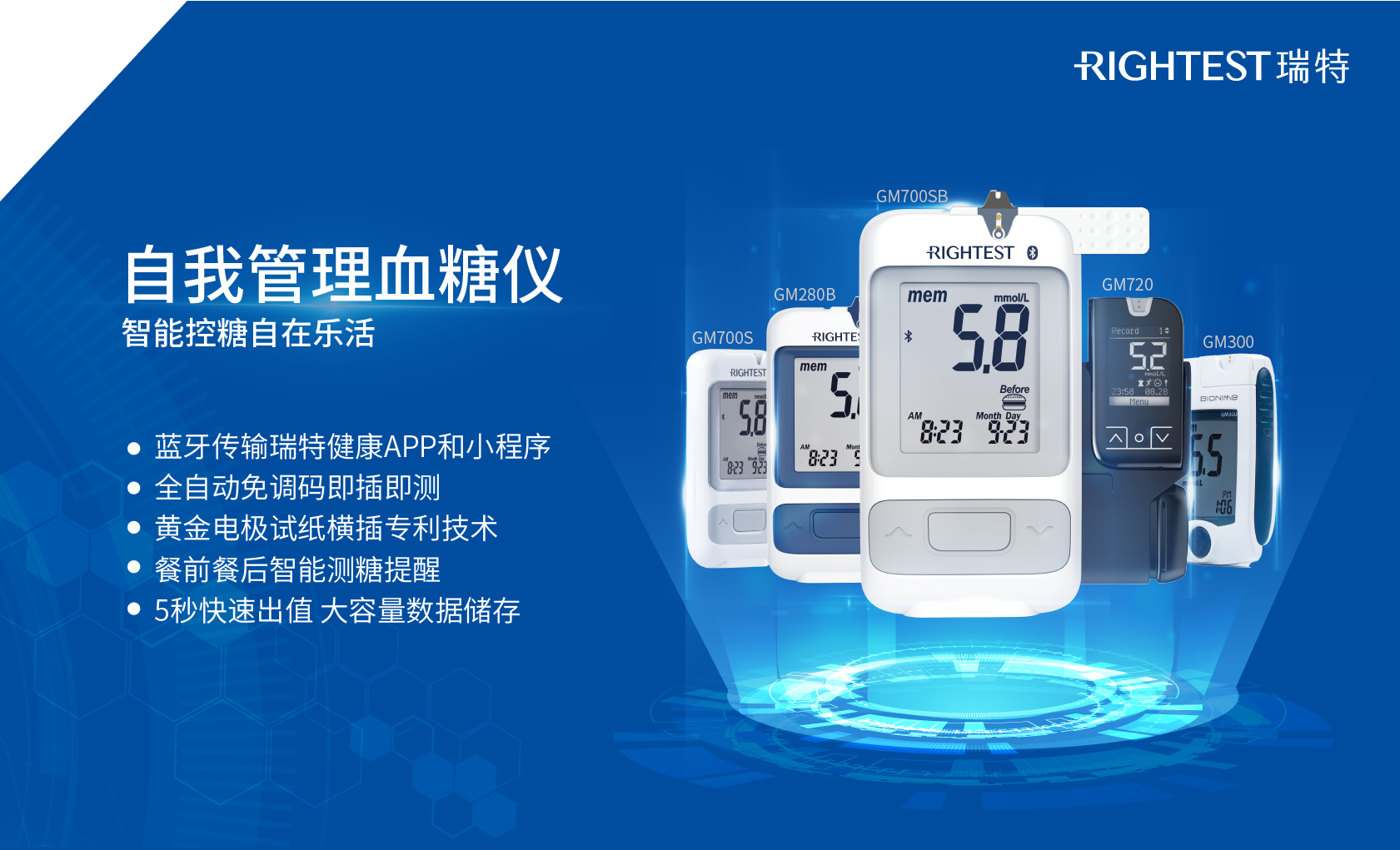 “智能控糖,自在樂活”,RIGHTEST瑞特以讓更多人擁抱健康為目標,秉承精準、信賴、創新、守護的品牌理念。