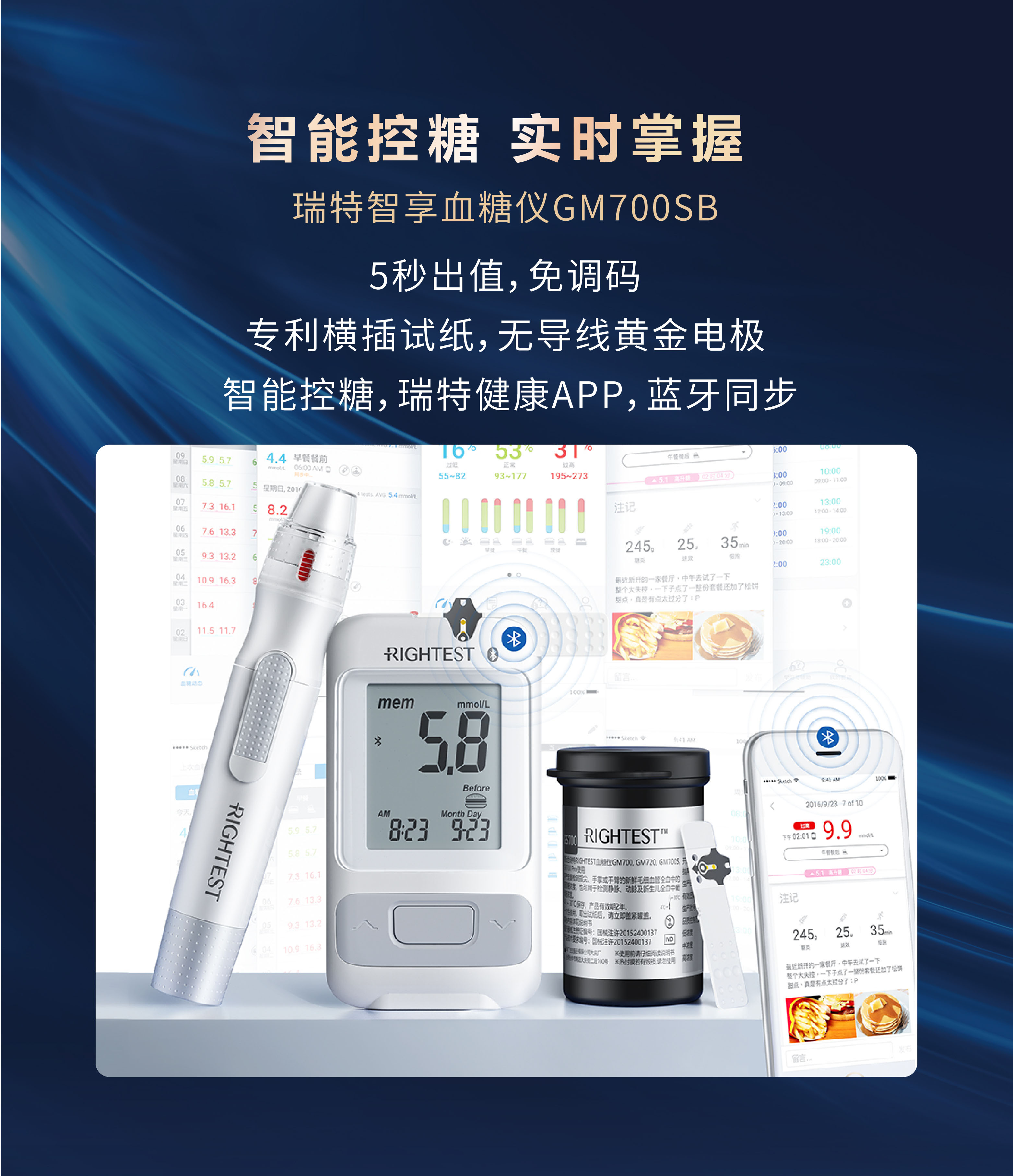 通過物聯網 +模式,將瑞特血糖儀 GM700Pro 、血糖管理系統及自我監測血糖儀與醫院HIS系統打通,實現了糖尿病人自我監測到院內門診、住院護理的無縫銜接和智能化遠程管理,構建一套智能血糖管理生態閉環 。