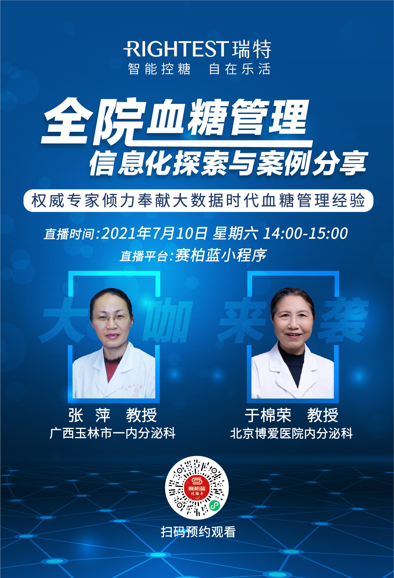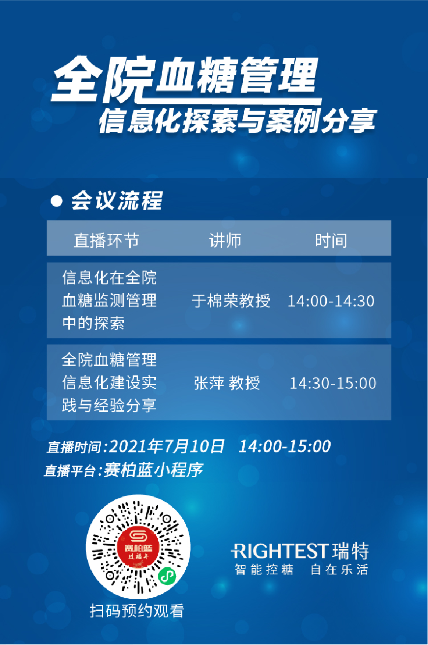 互聯(lián)網(wǎng)技術(shù)日益發(fā)展的今天,這一問題是否已經(jīng)有了理想的解決方案?華廣瑞特?cái)y手醫(yī)療行業(yè)垂直平臺(tái)“賽柏藍(lán)”將邀請(qǐng)張萍、于棉榮兩位內(nèi)分泌科資深專家于7月10日進(jìn)行線上學(xué)術(shù)直播會(huì)議,結(jié)合當(dāng)前政策背景及嘉賓豐富的從業(yè)經(jīng)驗(yàn)帶來全院血糖信息化管理的經(jīng)驗(yàn)分享。