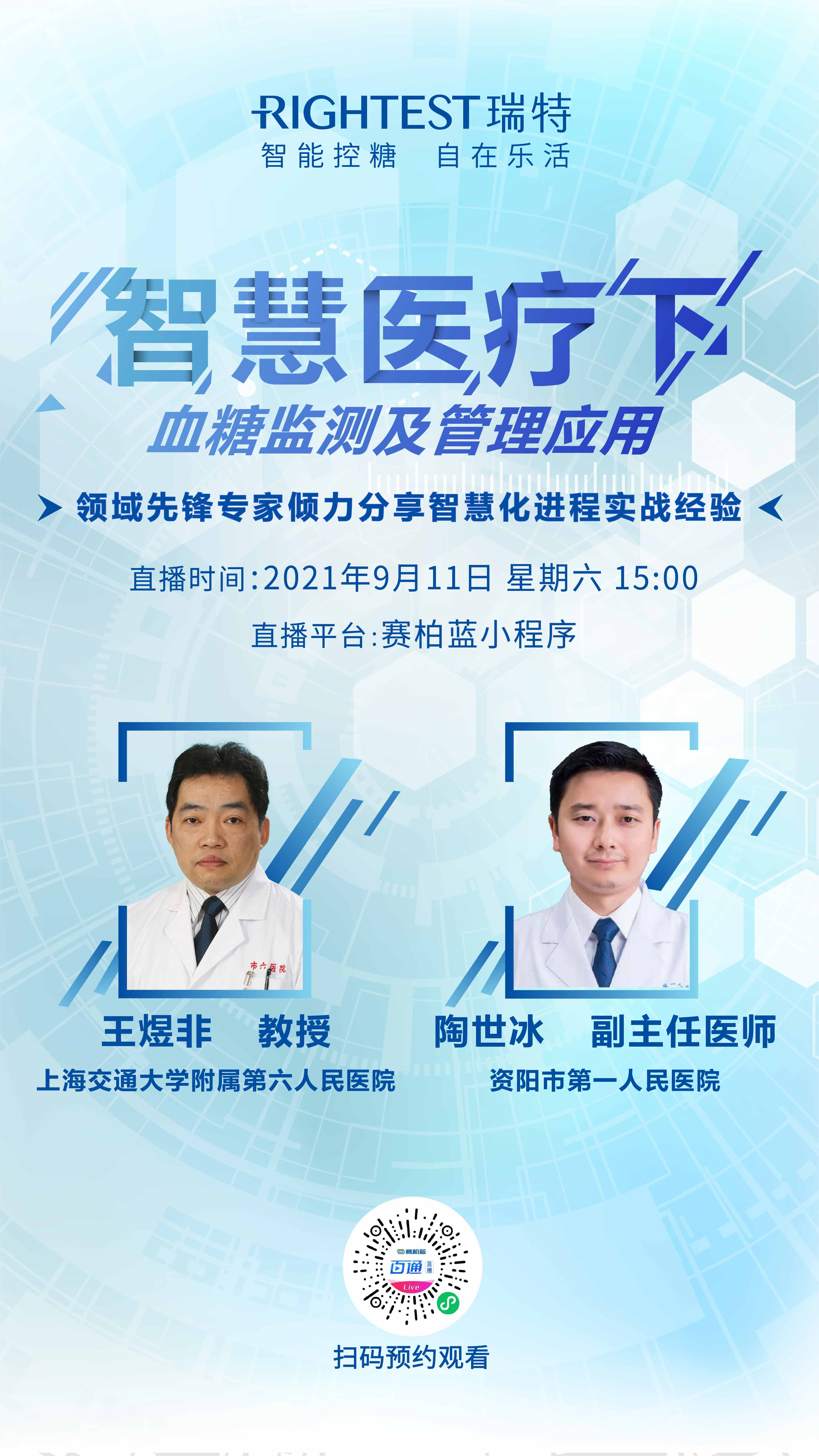 2021年9月11日下午15點,請鎖定“賽柏藍·百通”小程序,一同加入“智慧醫療下的血糖監測及管理應用”主題直播會議!