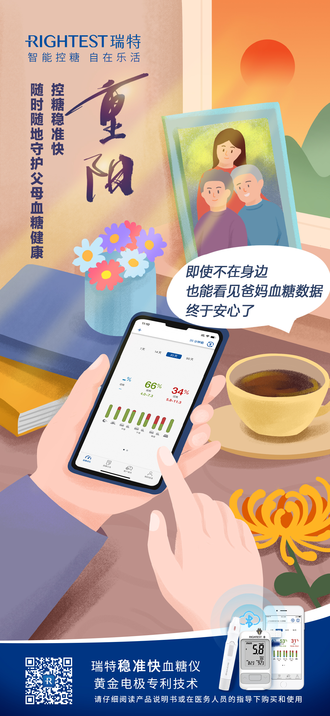 尊老、敬老、愛老、助老一直是中華民族的傳統美德,作為子女的能夠在力所能及的范圍內,讓父母的晚年生活更加健康,也是每個中華兒女的最大心愿。在控制血糖預防糖尿病的路上,需要我們再多點耐心、多點愛心、多點用心陪伴父母,這個重陽節讓我們一同與瑞特血糖儀一起讓“夕陽紅”照耀地更持久閃耀。