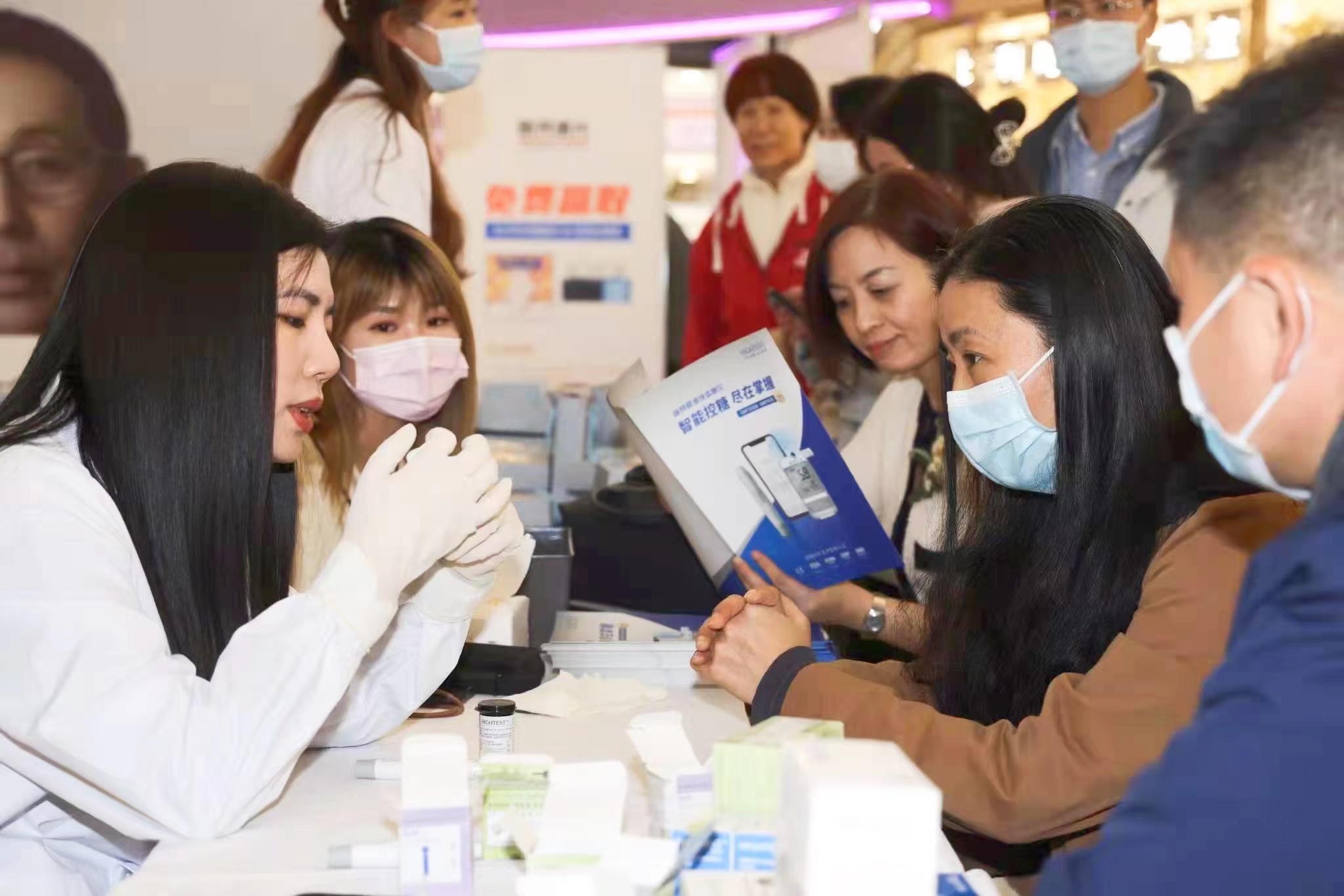 華廣瑞特工作人員為現場市民量測血糖