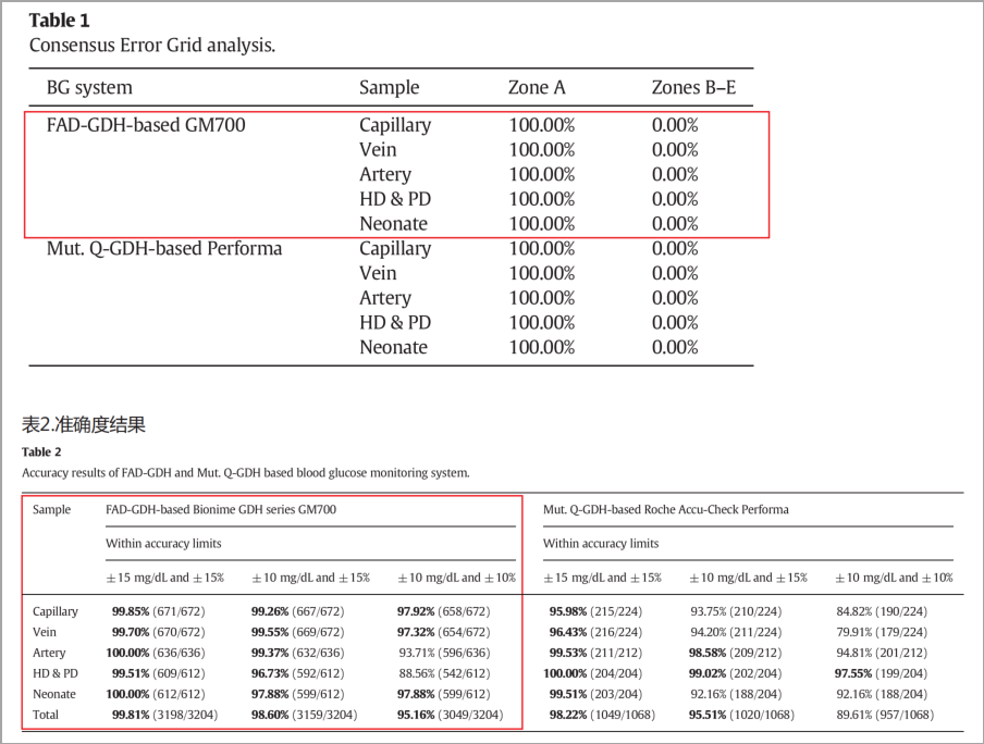 來源:<Evaluation of Accuracy of FAD-GDH and Mutant Q-GDH based Blood Glucose Monitors in Multi- Patients Populations>(《FAD葡萄糖脫氫酶與mutant Q葡萄糖脫氫酶兩種血糖監(jiān)測儀在不同患者人群中的準確度評估》)
