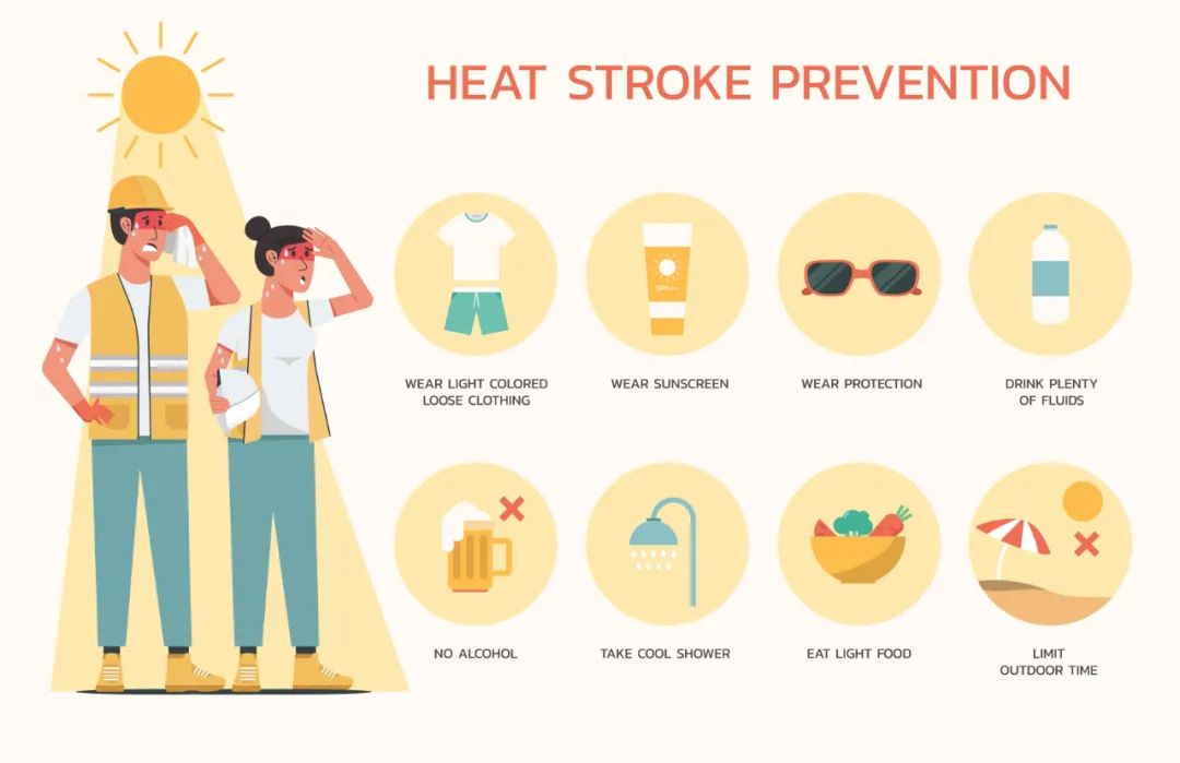 室內保持通風降溫,減少外出避免陽光直射和長時間暴曬;